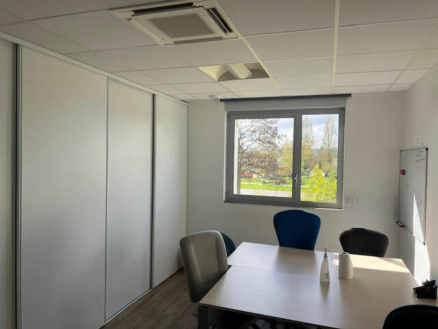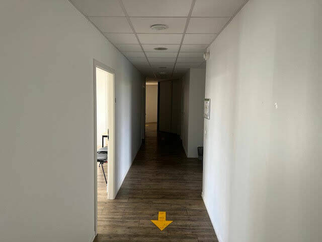Locaux à usage de bureaux aménagés et cloisonnés sur 2 niveaux d'une surface de 530 m² comprenant : 15 bureaux, 1 open space, 2 salles de réunion, local informatique, local archive, 2 blocs sanitaires. Faux plafonds, luminaires encastrés, sol PVC, climatisation réversible, plinthes périphériques avec câblage informatique Parking privatif important.