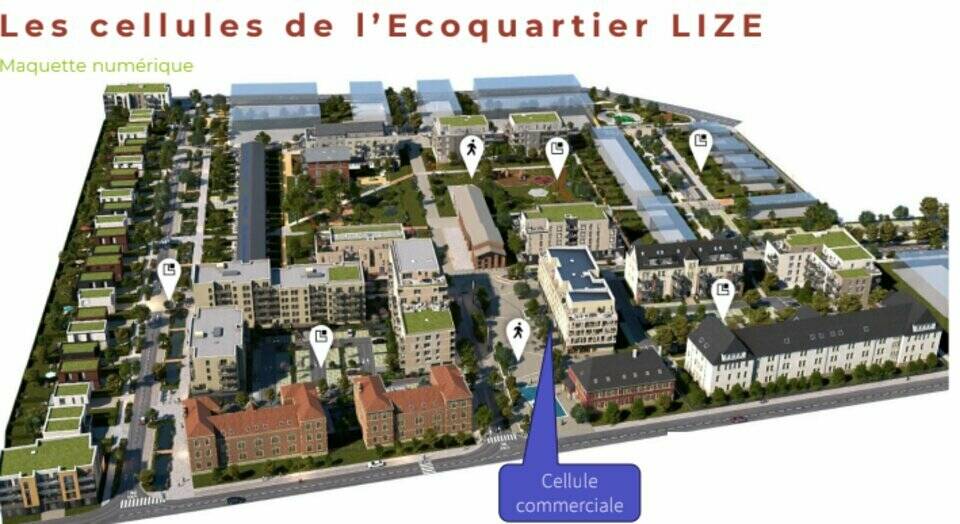 une opportunité rare : une cellule commerciale neuve à la vente, située au coeur du nouvel éco-quartier Lizé, rue Franiatte à Montigny-lès-Metz.