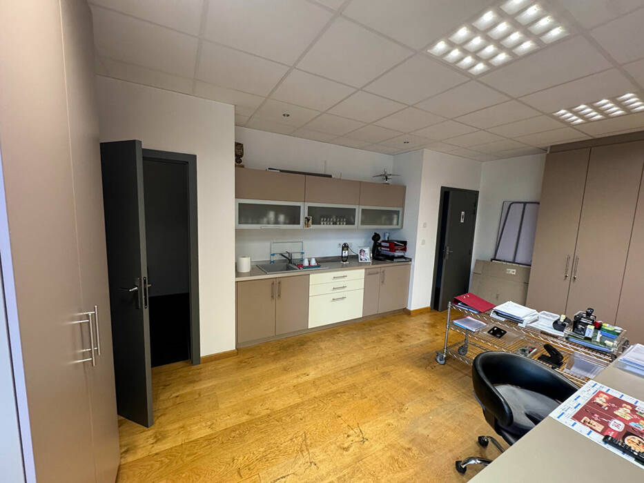 - 84 m² de bureaux répartis sur deux niveaux, aménagés et climatisés (comprenant placards, sanitaires et kitchenette).