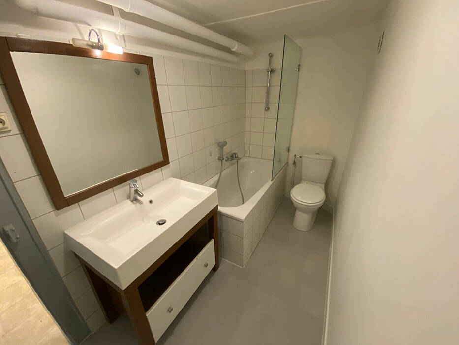 L'appartement se compose de la manière suivante: un séjour, une cuisine semi ouverte équipée (machine à laver, 2 plaques, four, réfrigérateur), d'une chambre avec un dressing et d'une salle de bains avec WC.