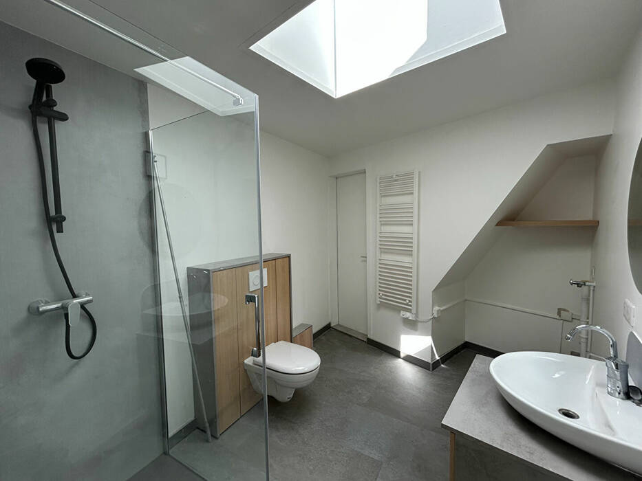 Cet appartement refait à neuf se compose de la manière suivante : une entrée avec placard, un séjour, une cuisine équipée, une chambre, une salle de douche avec un WC et un grenier aménagé avec accès depuis l'appartement.