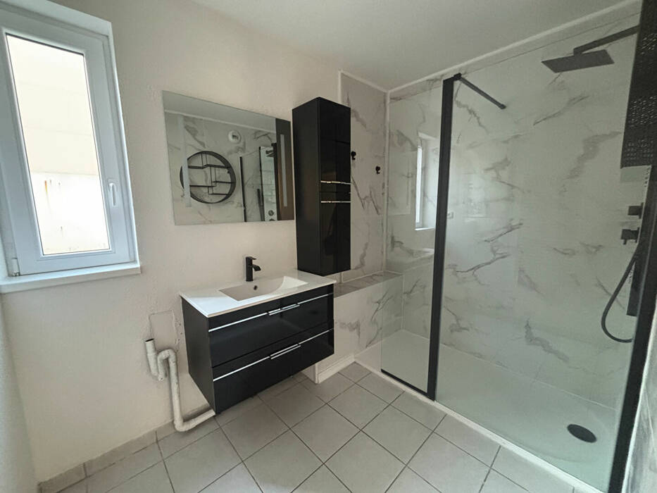 Il se compose d'une cuisine équipée (éléments meublants, plaques électriques, hotte, four ) ouverte sur séjour donnant accès à une grande terrasse , deux chambres avec placard et une salle de bain avec douche.