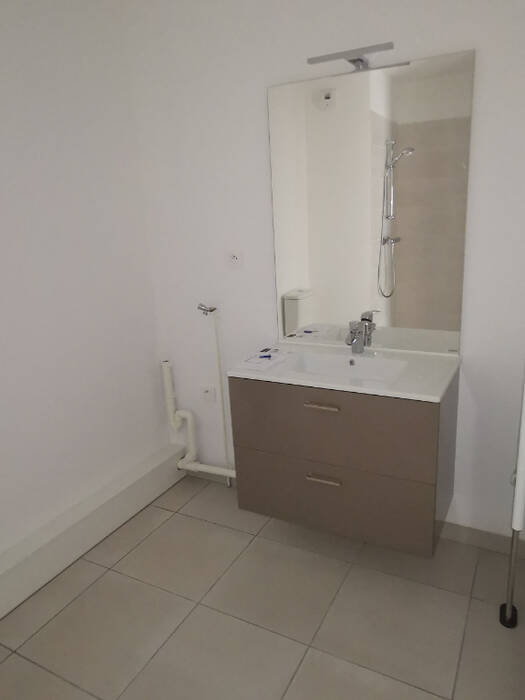 Il se compose d'une entrée avec placard, une salle d'eau avec WC, une chambre de plus de 11m², une cuisine équipée (four, plaque de cuisson, hotte, éléments de rangement) et ouverte sur un séjour donnant accès a une petite terrasse.