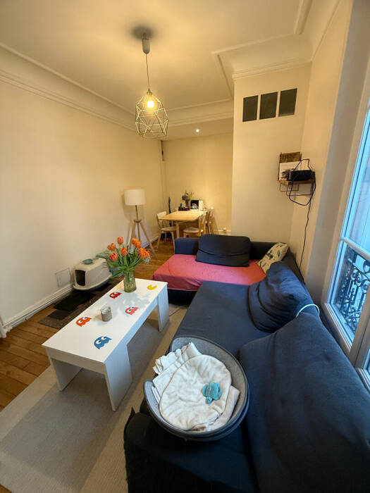 Un appartement meublé de trois pièces, situé au 1er étage d'un immeuble avec ascenseur, composé d'une entrée, un séjour, deux chambres, une cuisine, une salle d'eau et WC séparé.