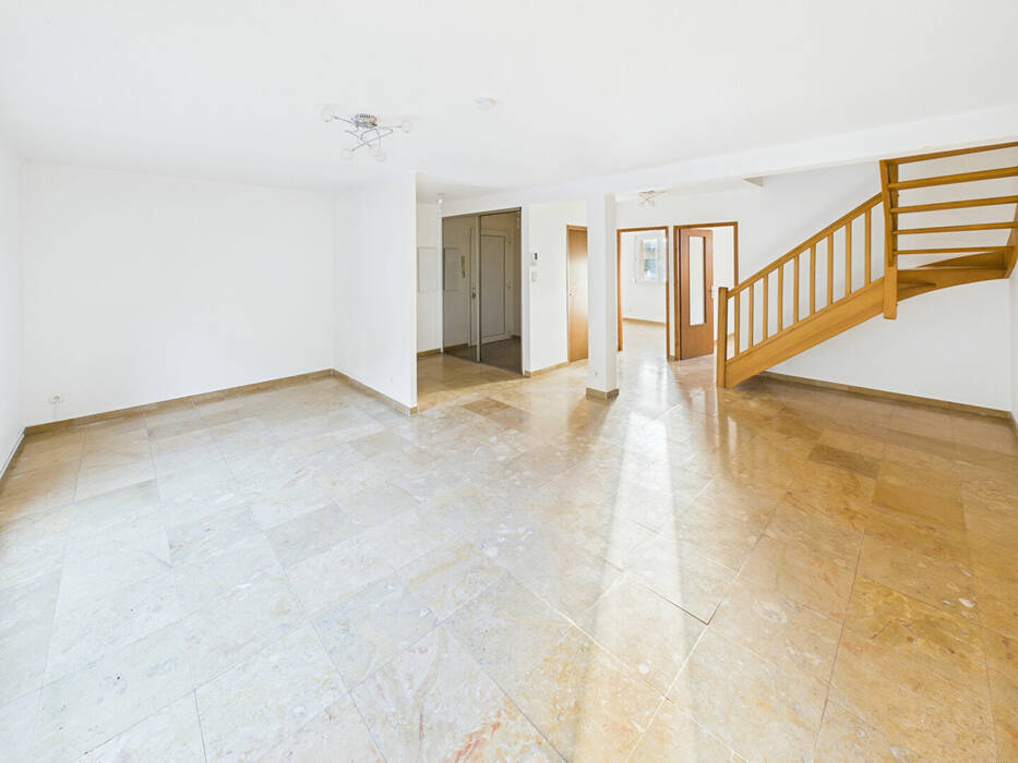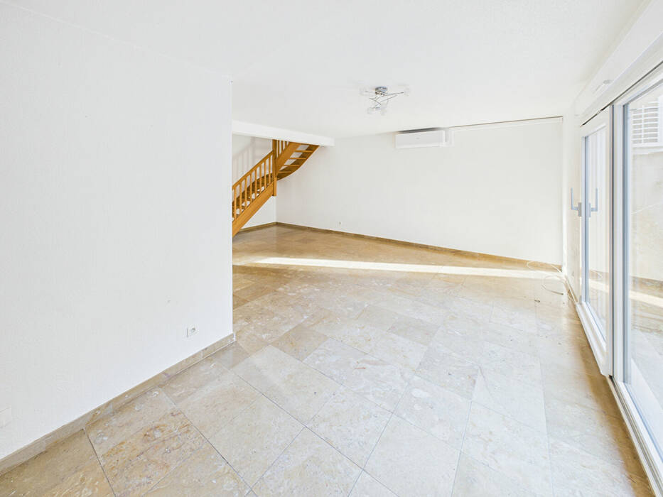Appartement T5 en duplex, comprenant au premier niveau : une entrée avec placards, un grand séjour lumineux ouvert sur une terrasse et un jardinet, une cuisine indépendante aménagée et équipée NEUVE , une chambre/bureau avec placard et des WC séparés.