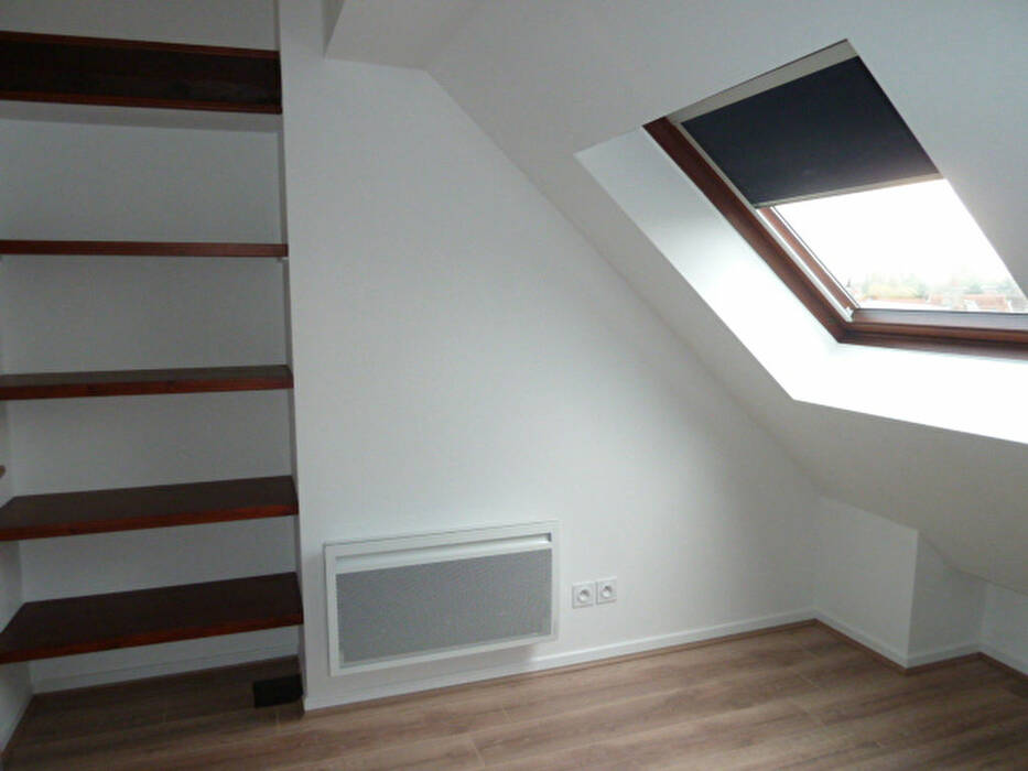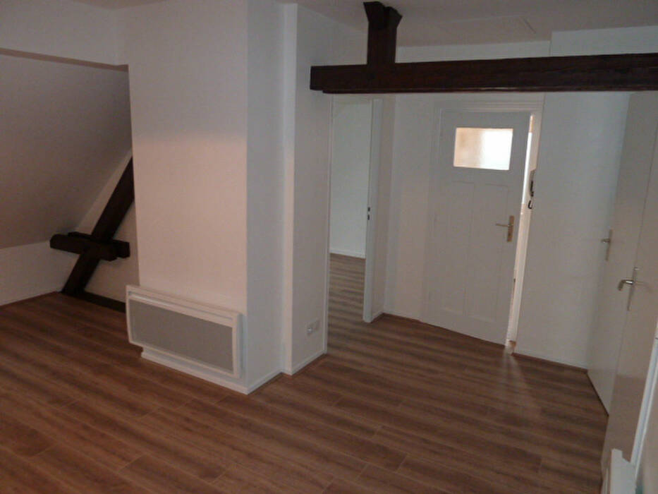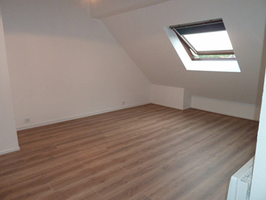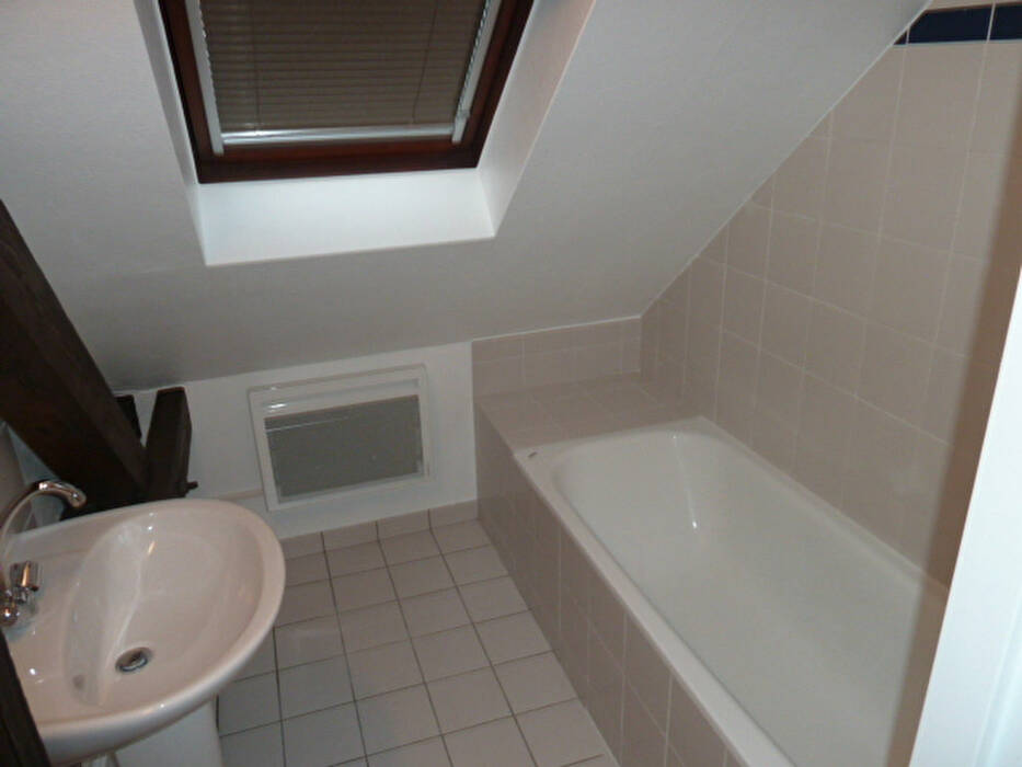 Dans petit immeuble au calme, beau F2 mansardé , cuisine ouverte équipée sur le séjour, une chambre avec rangement, salle de bains et WC séparé.