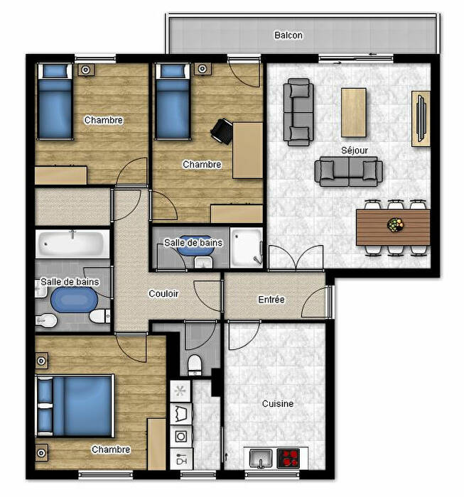 Dans une résidence bien entretenue, venez visiter cet appartement F4. Il comprend une entrée, un salon accès balcon, une cuisine, trois chambres, une salle de bain, une salle d'eau, un dégagement, un WC et une cave !