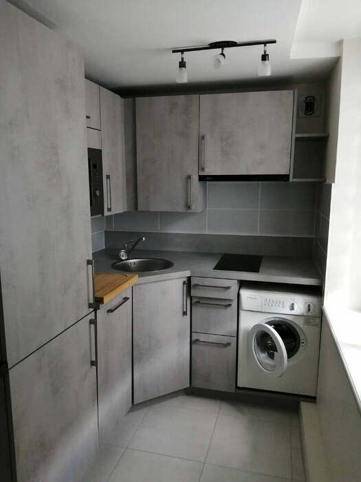 - d'une cuisine équipée (plaque de cuisson, hotte, réfrigérateur, machine à laver, éléments de rangements),