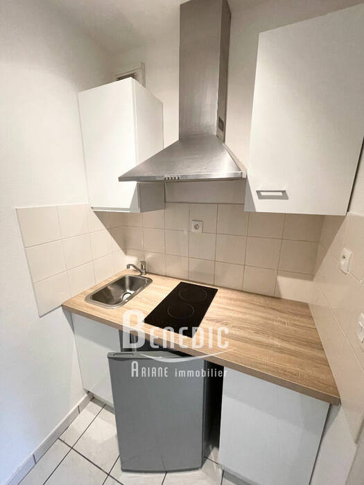 Ce studio fait 34.16 m² et se compose d'une entrée avec placard, d'un séjour, d'une cuisine séparée et équipée (plaques de cuisson, réfrigérateur, hotte et éléments de rangement), d'une salle de bain avec WC.