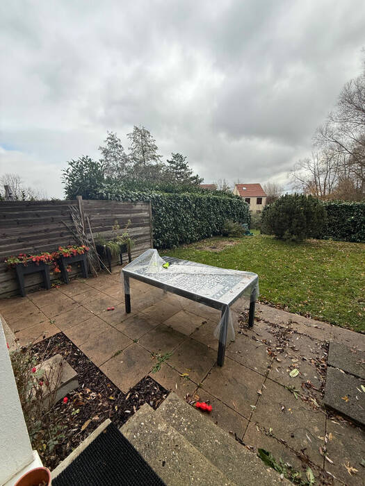 Le jardin privatif donne sur un parc arboré bénéficiant d'un terrain de tennis.
