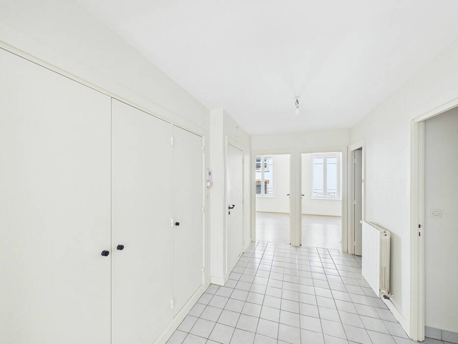 A louer, appartement T3 de 84 m² situé au 1er étage sans ascenseur dans un petit immeuble. Le logement est composé d'une grande entrée avec placard, d'un grand séjour lumineux, d'une cuisine séparée (cuisine en cours de pose), une salle de bain, WC séparés, deux chambres dont une avec placard et une buanderie.