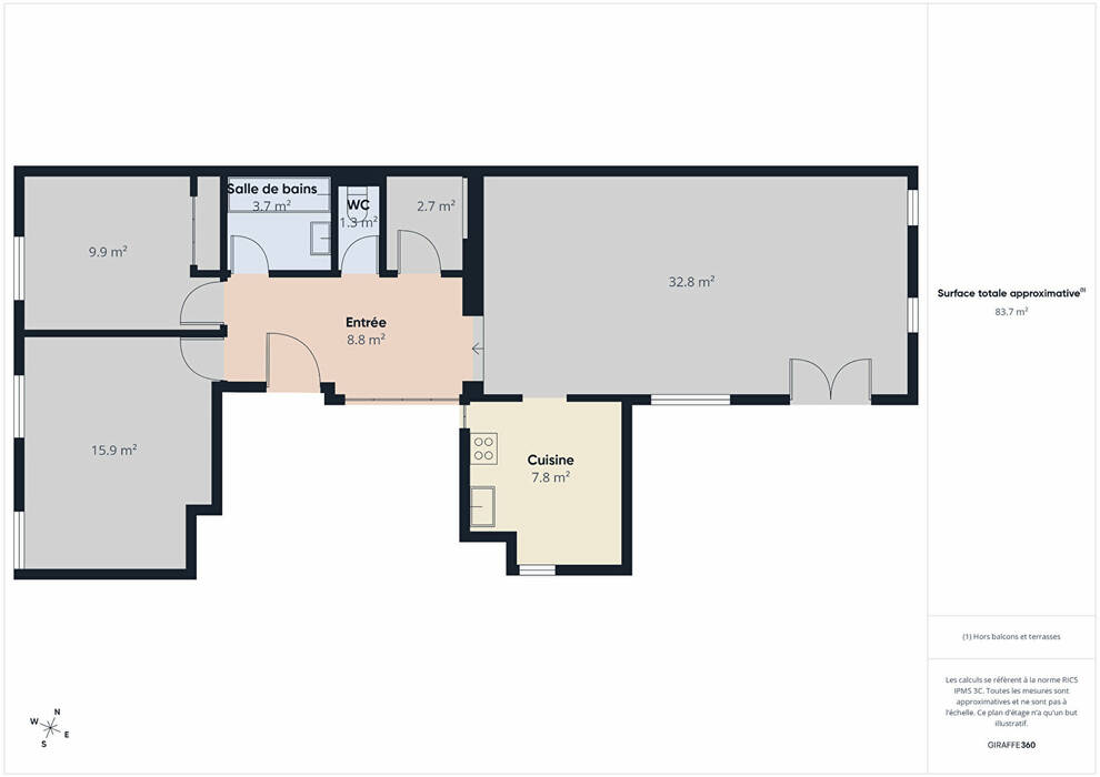 Surface totale: 84 m²