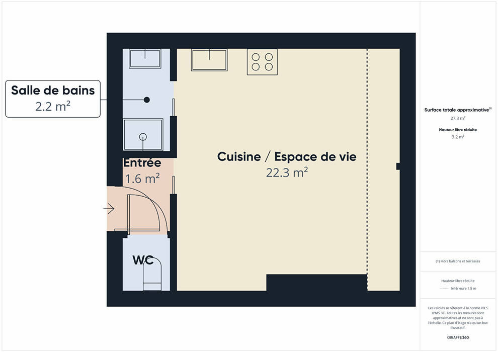 - d'une salle d'eau, et,