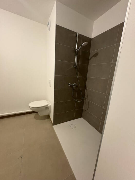 La salle de douche moderne est équipée d'une vasque et d'un WC.