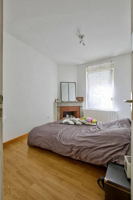 Au rdc vous trouverez une entrée, une pièce principale avec cuisine équipée ouverte, un wc, un placard, un débarras. Et au 1er étage, les 2 chambres, une salle de bains, 2 placards.