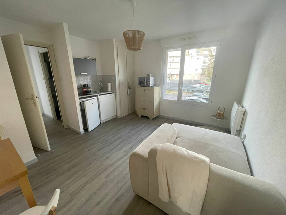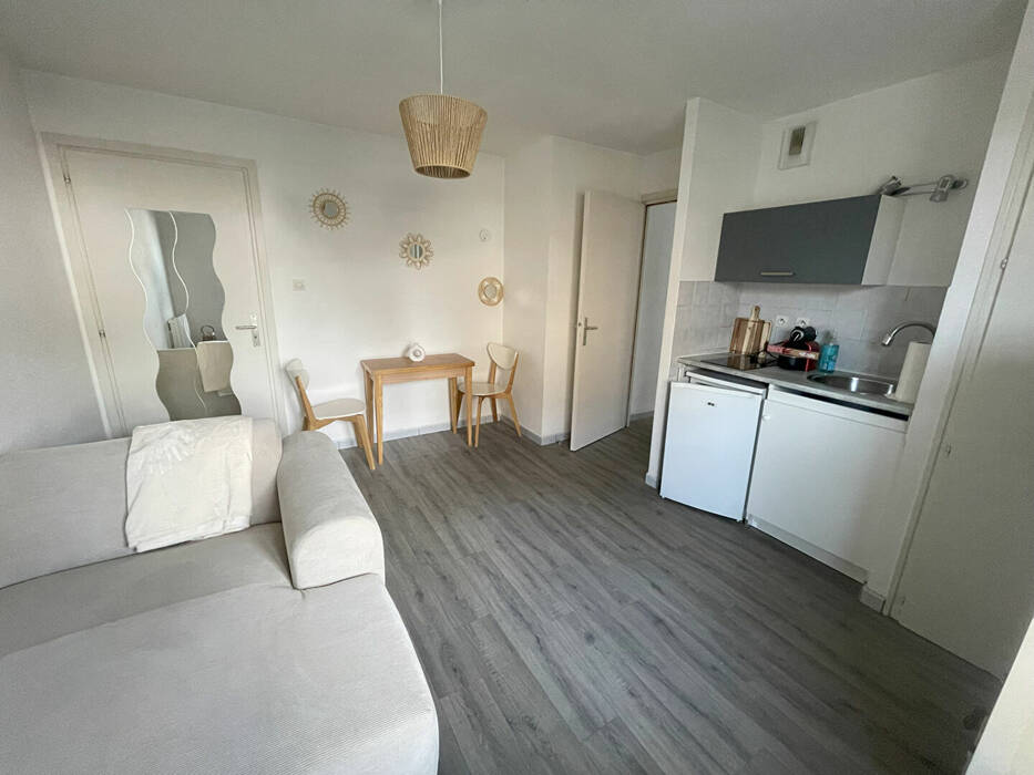 Cet appartement se compose d'une entrée, d'une chambre donnant sur un balcon de 4 m², d'une salle de douche avec WC , d'une kitchenette ouverte sur un charmant séjour.