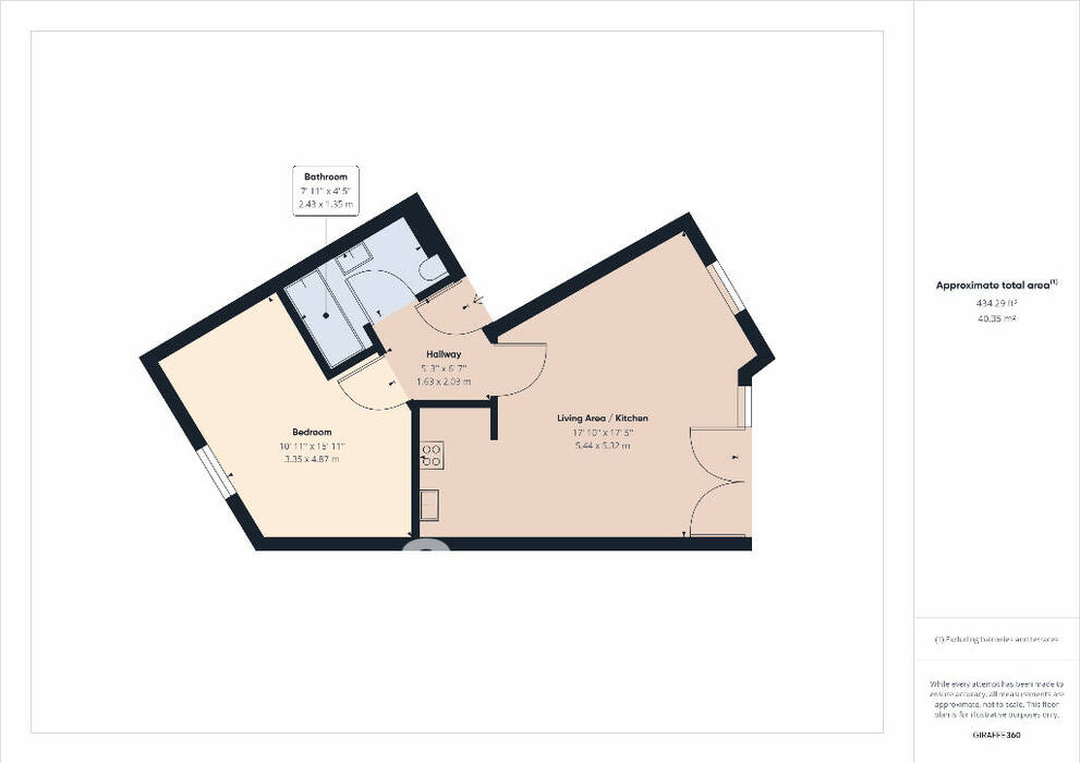 Ce bien lumineux de type F2 de 40m² comprend une entrée, une cuisine équipée ouverte sur le séjour, une chambre, une salle de bains (baignoire) avec WC