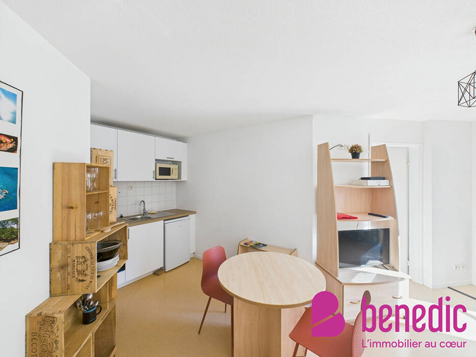 Ce logement de type F2 meublé est confortable : le séjour avec coin cuisine équipée est agréable, la chambre possède son lit 2 places et son coin bureau pour travailler ! la salle de bain est dotée d'une baignoire.