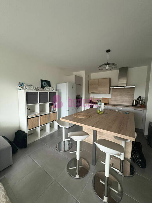 L'espace de jour est ouvert sur une cuisine ouverte équipée et vous donne accès à une spacieuse terrasse de 15 m2.