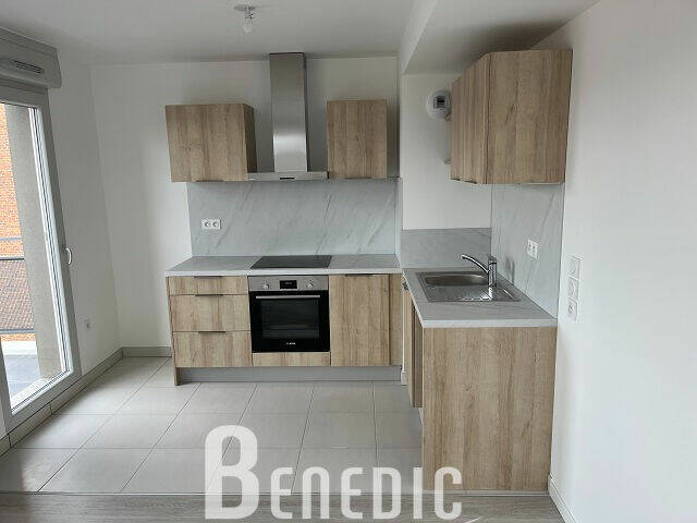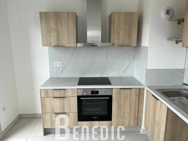 Cet appartement T2 de 40 m² est composé d'une cuisine équipée (plaque de cuisson, hotte et éléments de rangement) ouverte sur le séjour, une chambre et une salle d'eau avec WC.