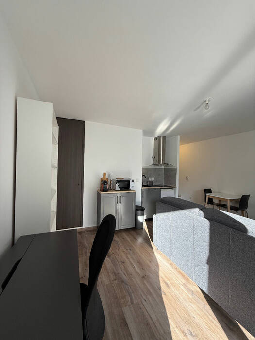 A louer Studio meublé au sein de la résidence récente Arteo, située à proximité du campus ARTEM, des transports et des commerces, découvrez ce charmant studio meublé avec terrasse privative de 7,4 m² exposée à l'arrière de la copropriété, au calme.