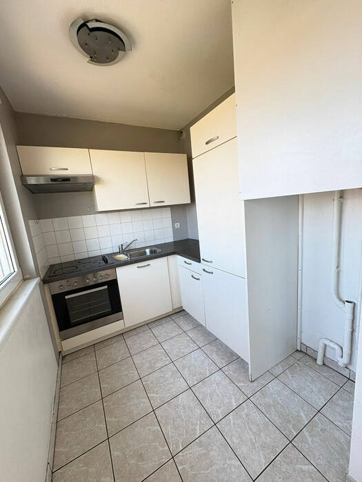 Il se compose d'une pièce principale avec accès à un balcon, une cuisiné équipée (four, plaque, hotte, frigo) et une salle d'eau avec WC.