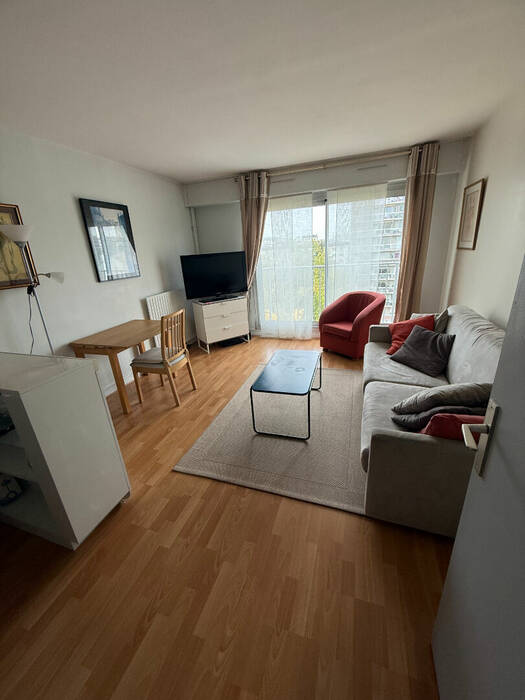Un studio meublé, situé au 7ème étage d'un immeuble avec ascenseur, composé d'une entrée, d'une pièce principale, d'une cuisine équipée, d'une salle d'eau avec toilette.