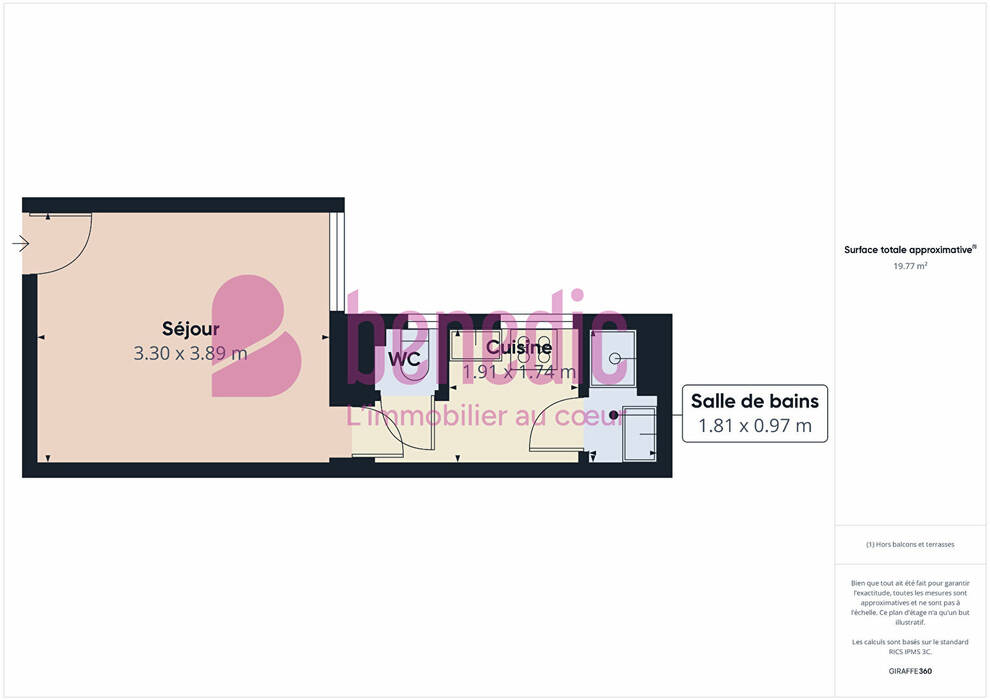 Surface totale: 19 m²