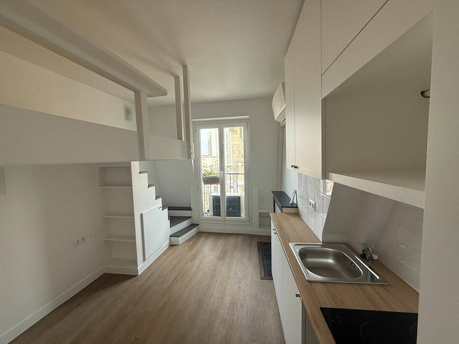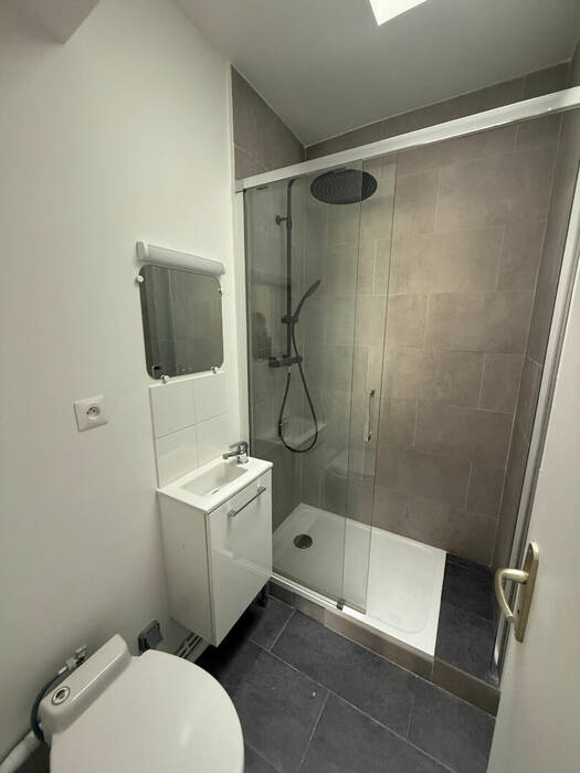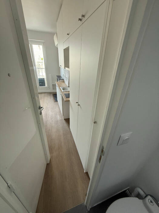 Ce studio se situe au 6ème étage d'un immeuble sans ascenseur, et se compose d'un séjour avec cuisine ouverte, d'une salle d'eau avec WC. Un cagibi de rangement avec point d'eau sur le palier.