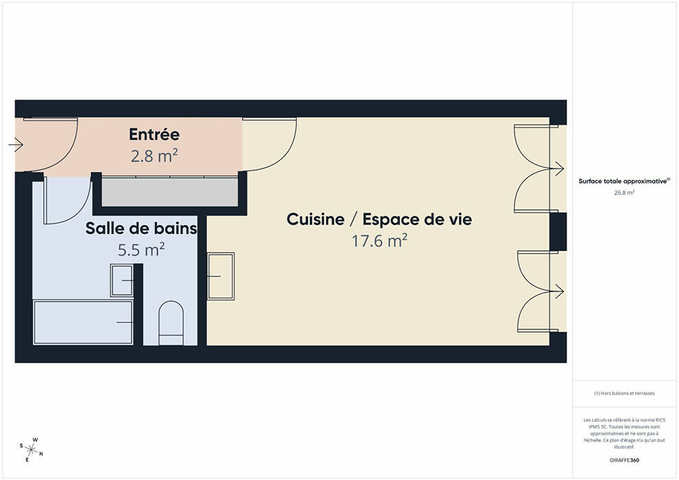 Surface totale: 28 m²