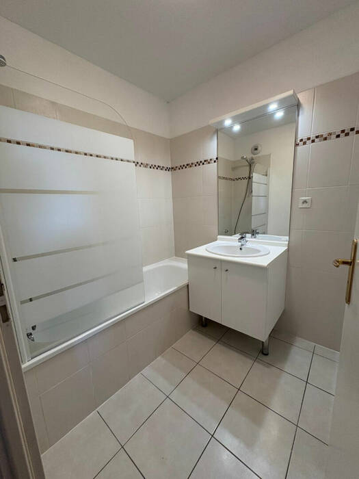 Ce logement récemment rénové, comprend une entrée, une cuisine entièrement équipée avec plaque, hotte, four, lave vaisselle, réfrigérateur et congélateur, ouverte sur le séjour et accès à une terrasse de 8.31 m2, de deux chambres avec placard, d'une salle de bains et d'un WC.