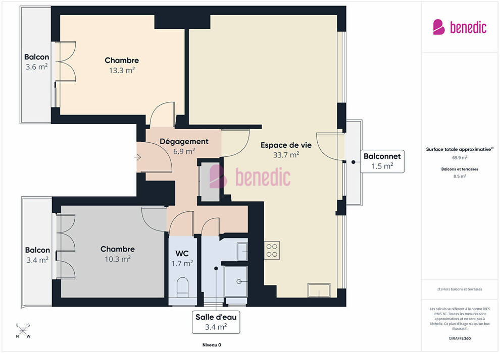 Surface totale: 68 m²