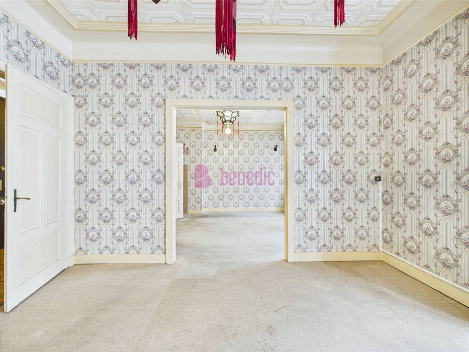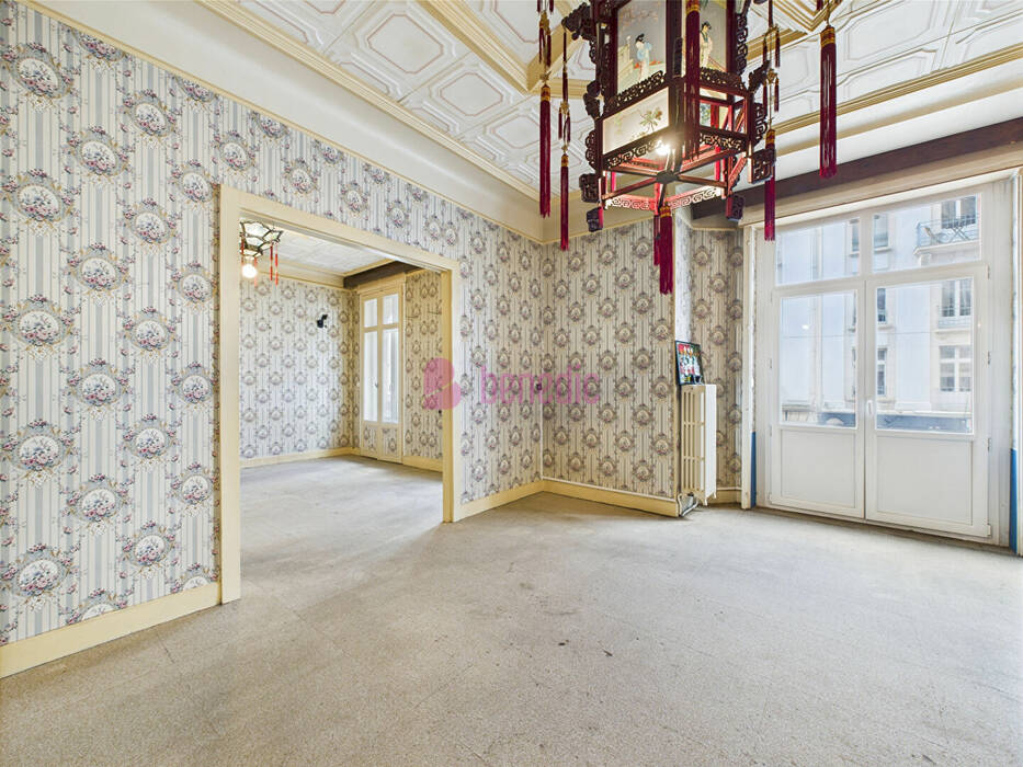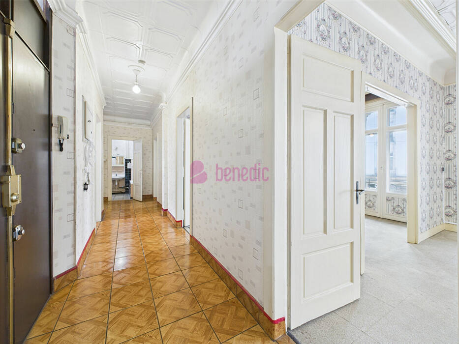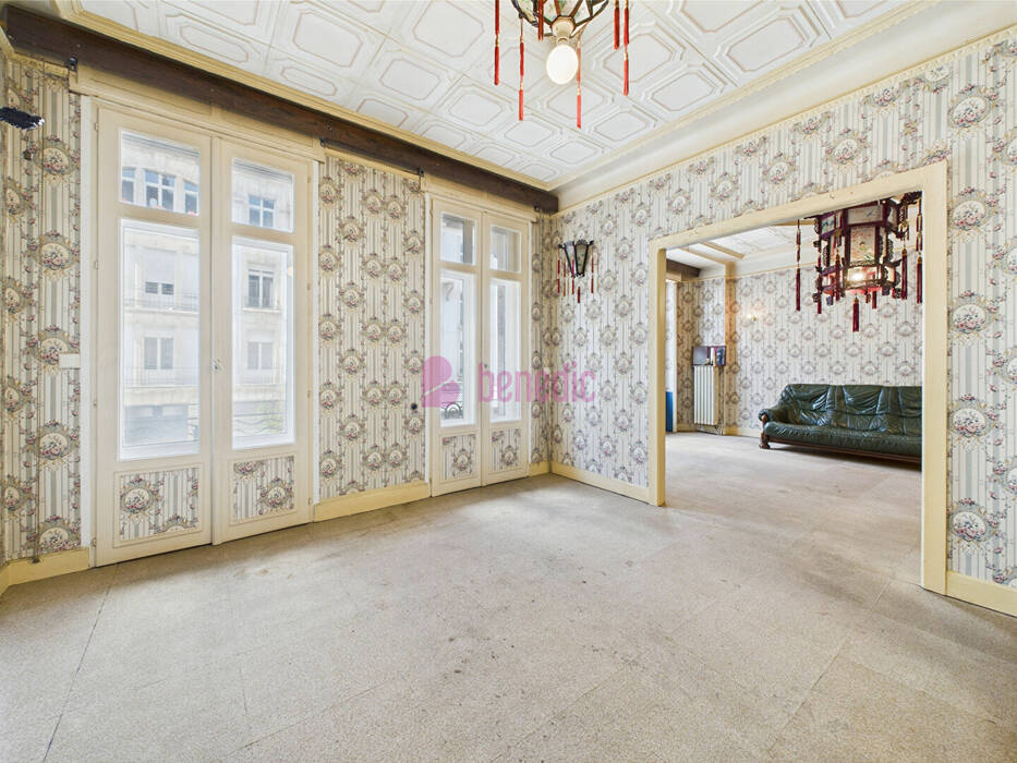 Situé au premier étage d'un immeuble bourgeois, appartement de 5 pièces aux volumes généreux et comprenant une entrée, un salon séjour de près de 38m², une cuisine séparée avec cellier et loggia, trois chambres, une salle de bains, WC séparé.