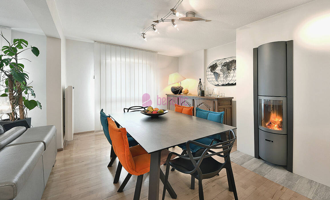 Occupant le 3ème et dernier étage, l'appartement se compose d'une entrée avec placard, d'une spacieuse pièce de vie de plus de 37 m² agrémentée d'un poêle à bois, idéale pour des moments chaleureux.
