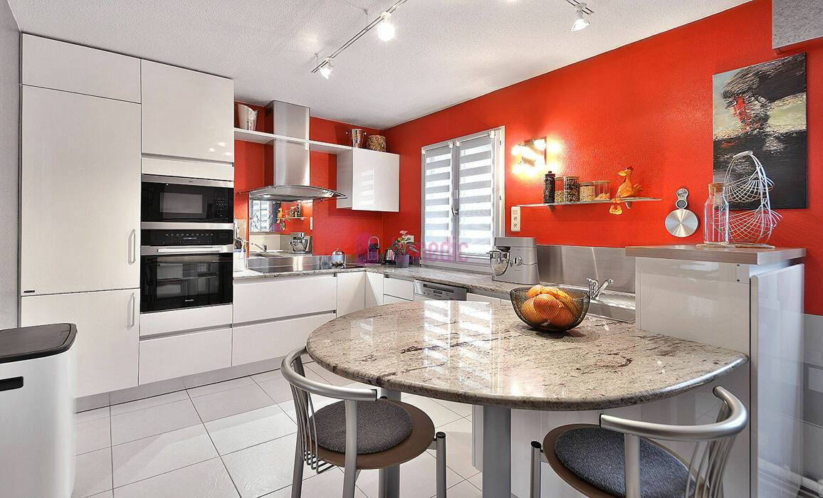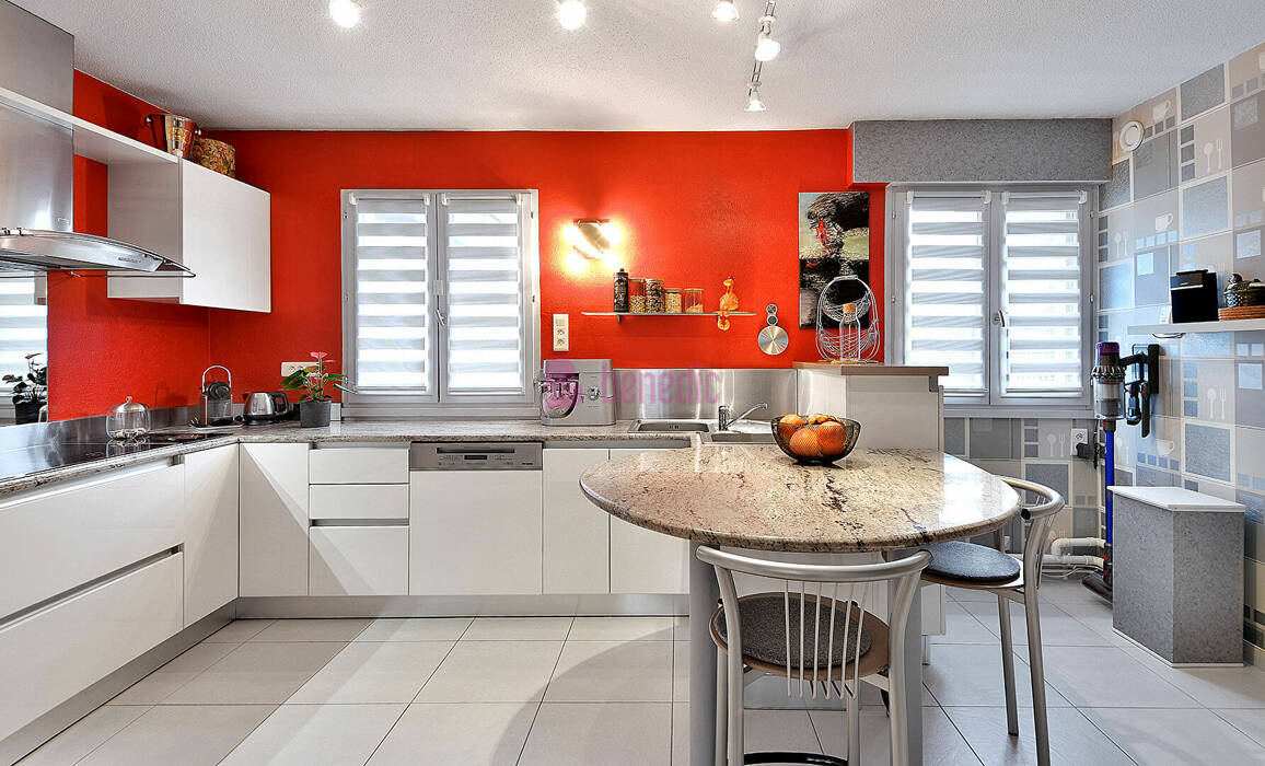 La cuisine équipée de qualité, semi-ouverte sur le séjour, allie convivialité et fonctionnalité.