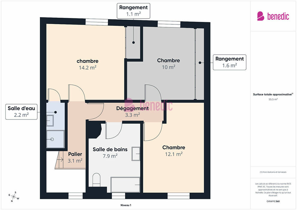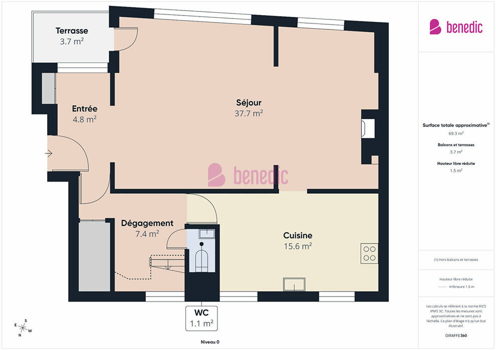 Un WC indépendant ainsi qu'un dégagement avec rangements complètent ce niveau et donne accès à l'étage.