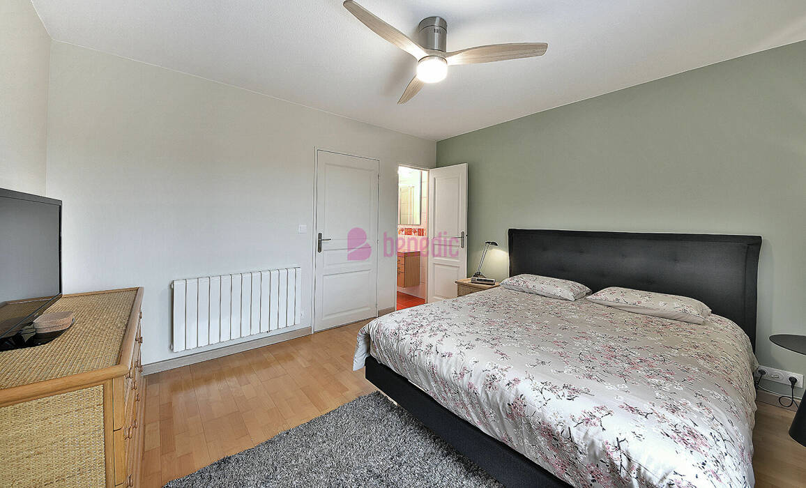 L'espace nuit, propose trois chambres, dont une avec accès direct à une salle d'eau, ainsi qu'une salle de bains avec WC.