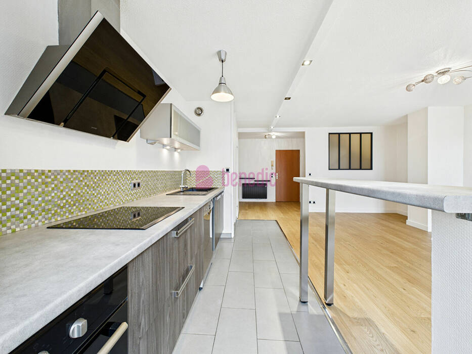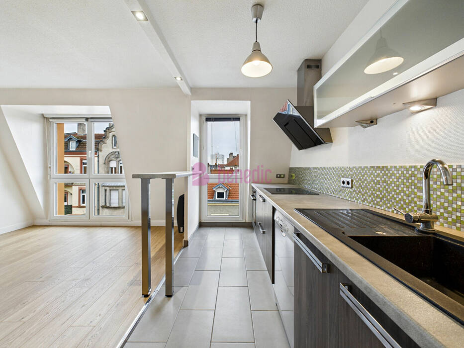 Adossé au square Amos, et trônant au dernier étage de la résidence "la Malterie", un appartement duplex de 95.95m² au sol comprenant une entrée avec placard et débarras, un WC avec lave-mains, et un vaste séjour ouvert sur une cuisine équipée.
