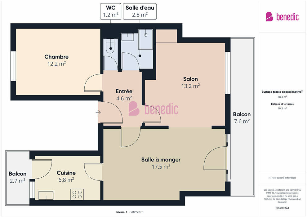 Les deux balcons situés aux extrémités de l'espace de vie génère une luminosité sans égale.