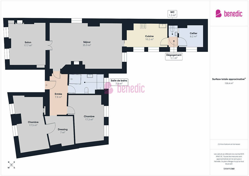 Surface totale: 127 m²