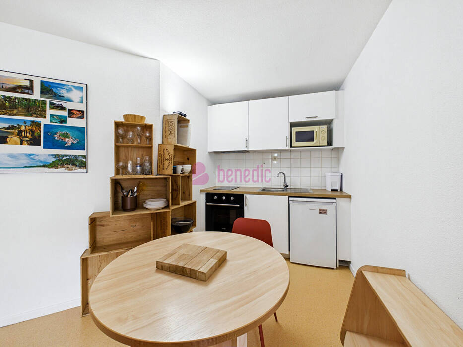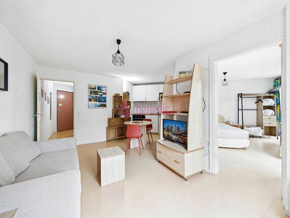 Fonctionnel et lumineux situé au 2ème étage d'une résidence avec ascenseur : il comprend une entrée avec placard, un séjour meublé avec kitchenette équipée ouverte sur le séjour, une chambre meublée, une salle de bains avec WC. L'appartement est également doté de 2 balconnets.