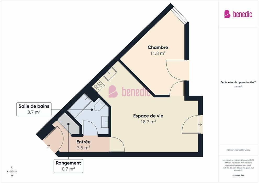 Surface totale: 37 m²