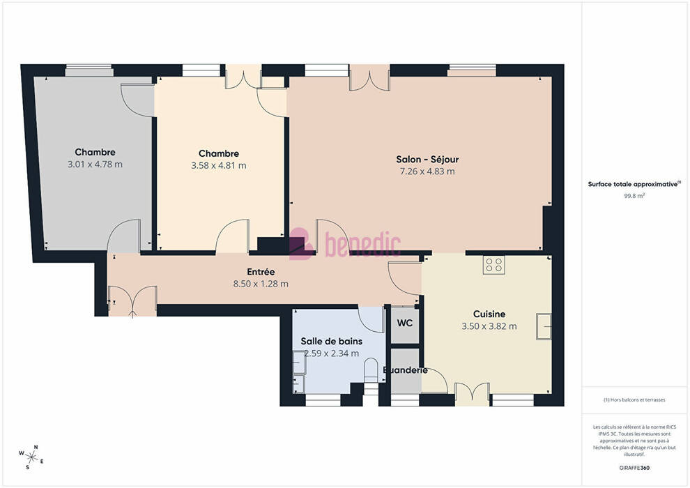 Vous apprécierez ses espaces judicieusement agencés : un vaste salon-séjour avec balcon filant et cuisine équipée attenante avec balcon et buanderie / cellier, deux chambres, une salle d'eau avec toilettes et des toilettes séparées.
