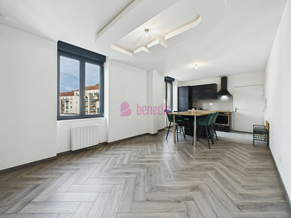 QUARTIER PANTIERES-QUEULEU, le cabinet BENEDIC vous présente ce superbe F2 de 46m2 situé au premier étage avec ascenseur d'un immeuble de charme entièrement rénové en 2022, sous garanties décennales.