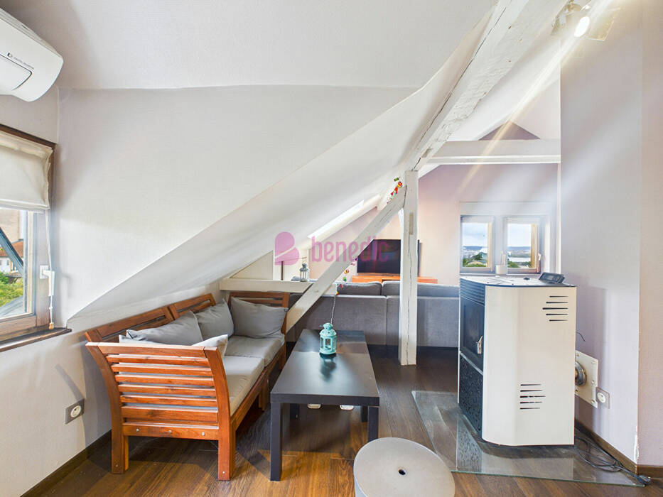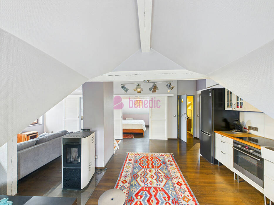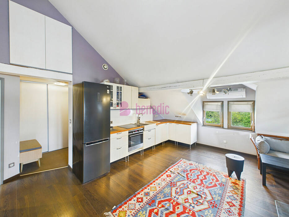 Situé au 2ème étage et dernier étage d'une petite copropriété bien tenue et aux charges faibles, cet appartement comprenant une entrée avec placards, une vaste pièce de vie de 43,11m² au sol soit 32,32m² carrez avec une cuisine équipée, deux chambres avec placards sous les rampants, une salle d'eau et un WC.