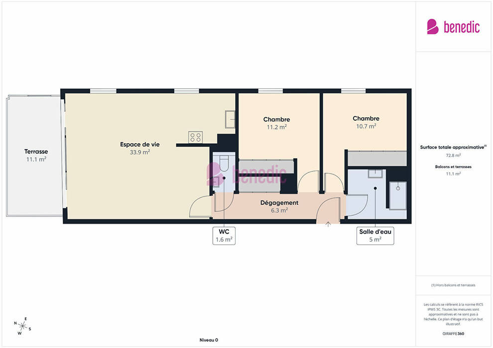Surface totale: 72 m²