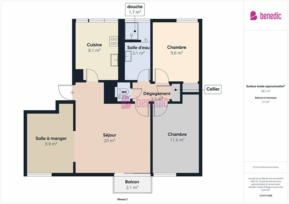 D'une superficie de 67,5 m², cet appartement lumineux et décoré avec goût offre :