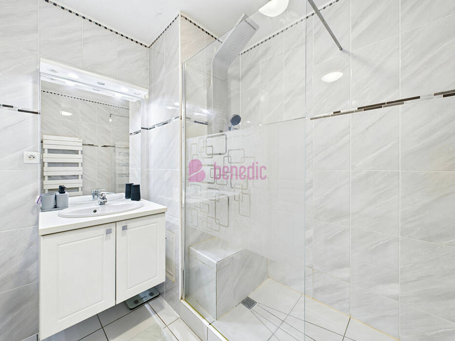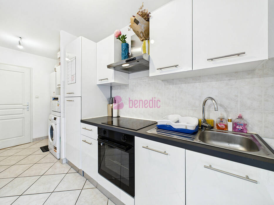 Un appartement de 3 pièces comprenant une entrée avec placard, une vaste pièce de vie d'environ 33m² avec séjour ouvert sur une cuisine équipée récente, avec accès à une terrasse. Un dégagement avec placards, un WC, une salle d'eau et deux chambres.