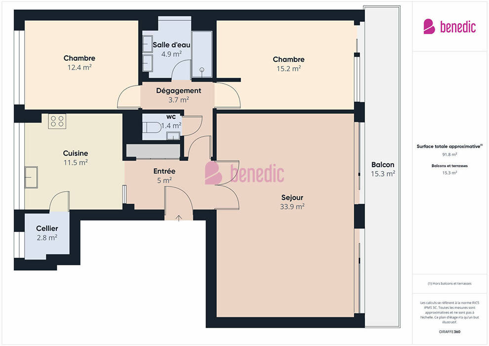 - loggia de 15m², bien exposée, disposant de stores motorisés,
