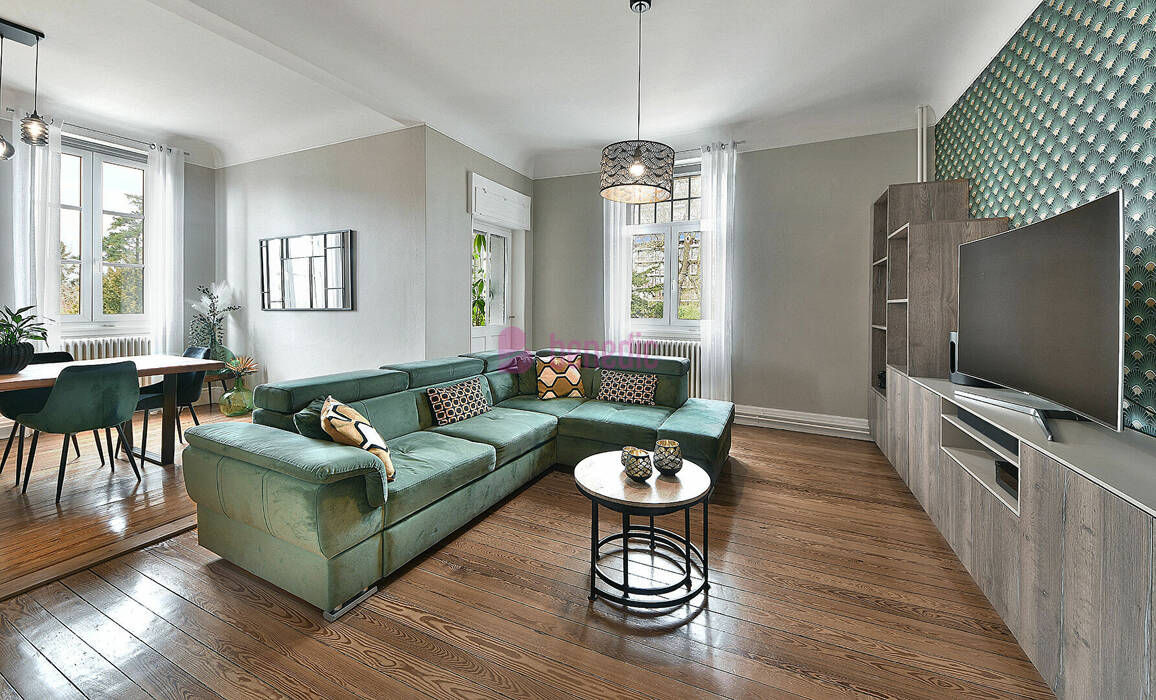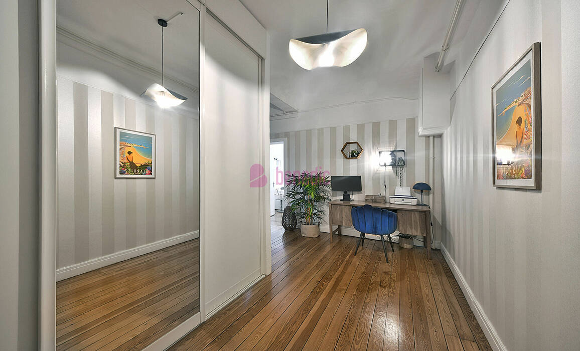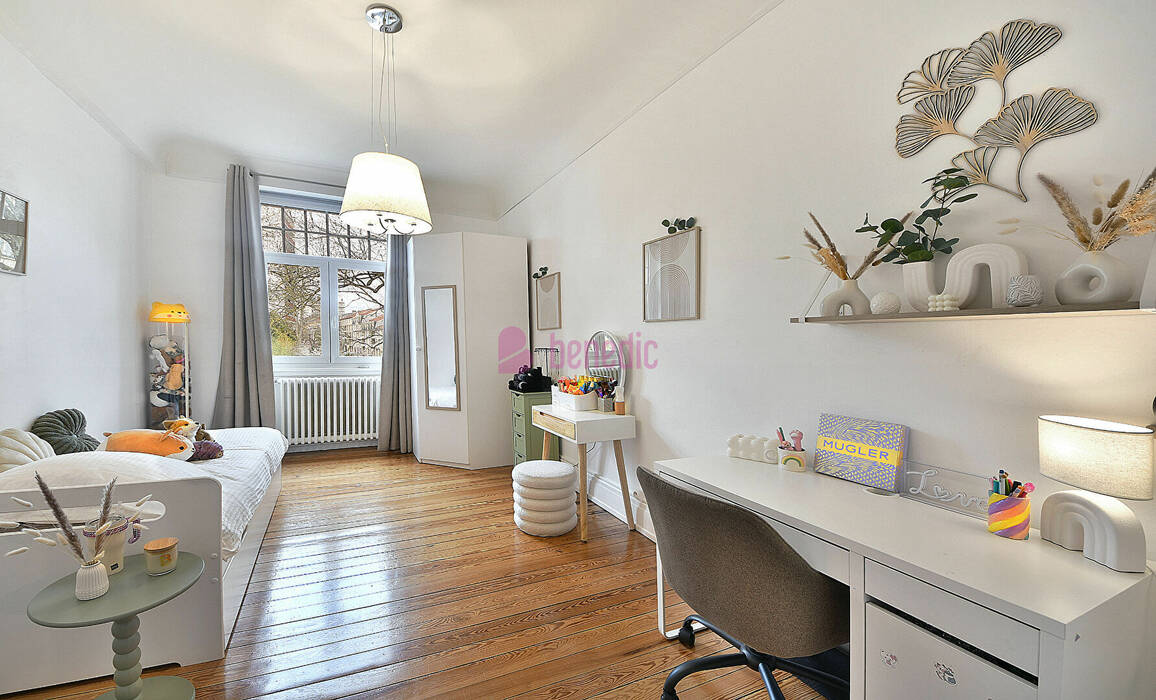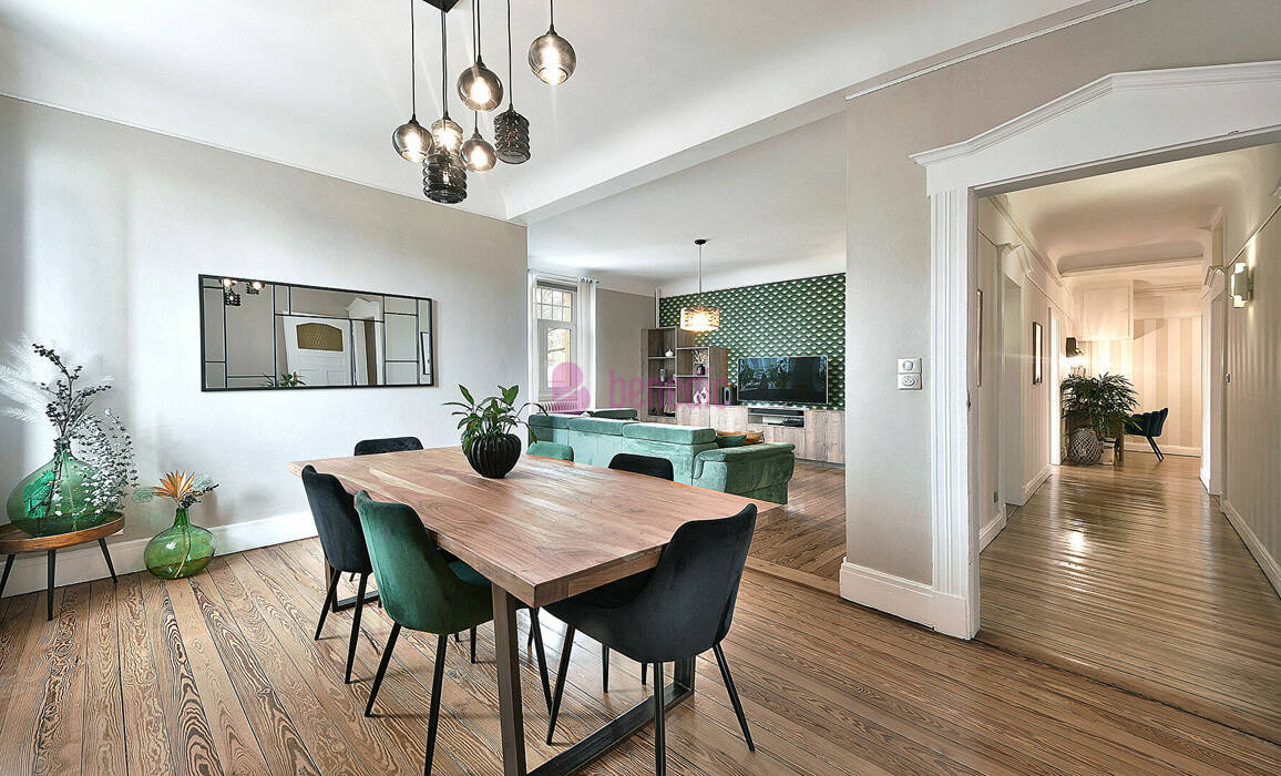 Au premier étage d'un élégant immeuble de caractère, ce bien rare de 99 m² séduit dès l'entrée par son alliance harmonieuse entre le cachet de l'ancien et des prestations contemporaines de qualité.